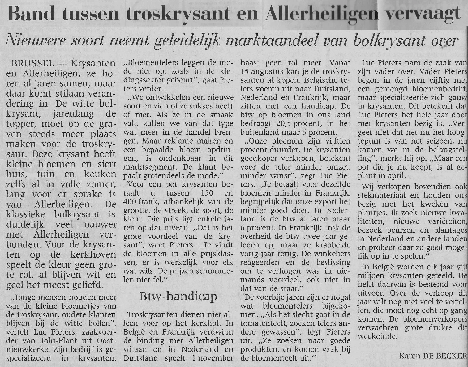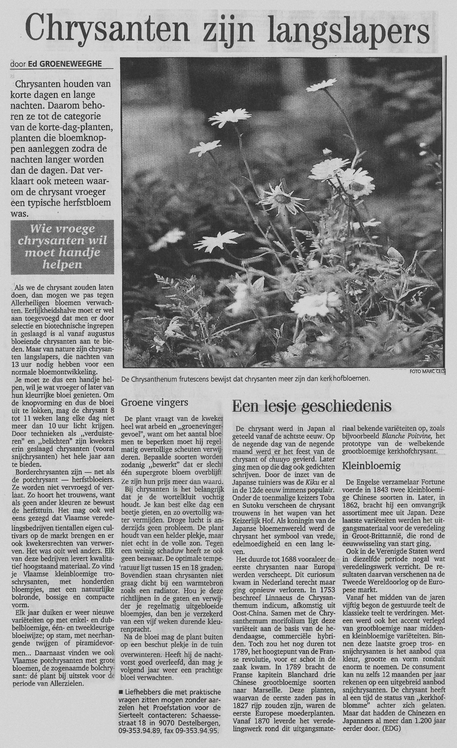 Chrysanten zijn langslapers - 19/09/1998, DS