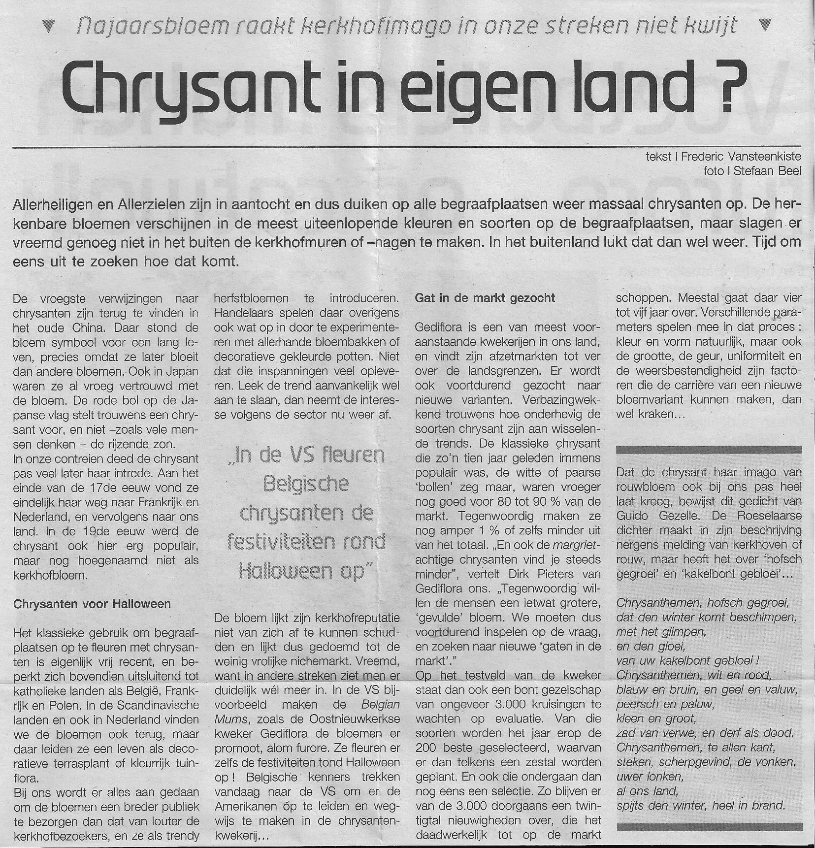 De kerkhofstemming van een chrysantenkweker - 29/10/2005, DS