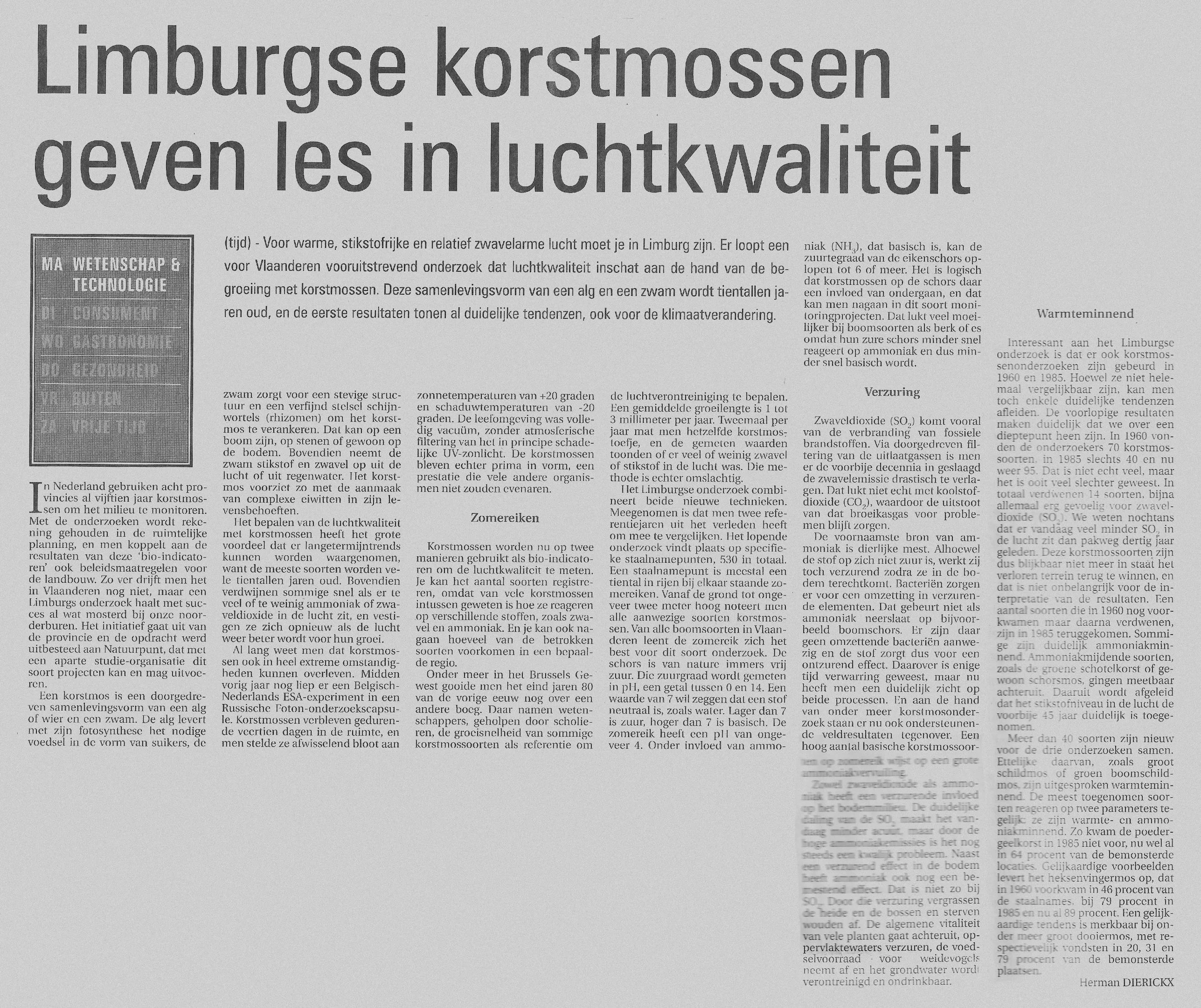 Limburgse mossen geven les in luchtkwaliteit - 06/02/2006, DS