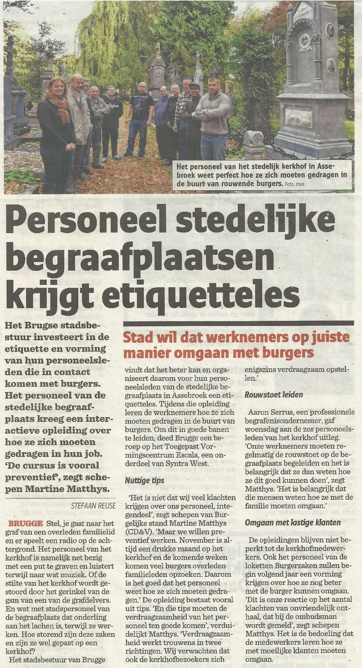 Personeel stedelijke begraafplaatsen krijgt etiquetteles - 25.10.2013, NB