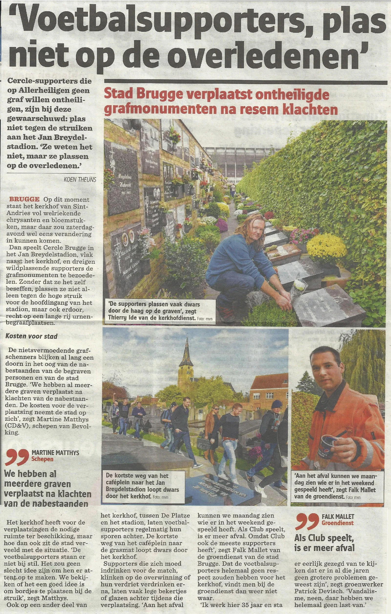 Voetbalsupporters plas niet op overledenen - 31/10/2014, NB